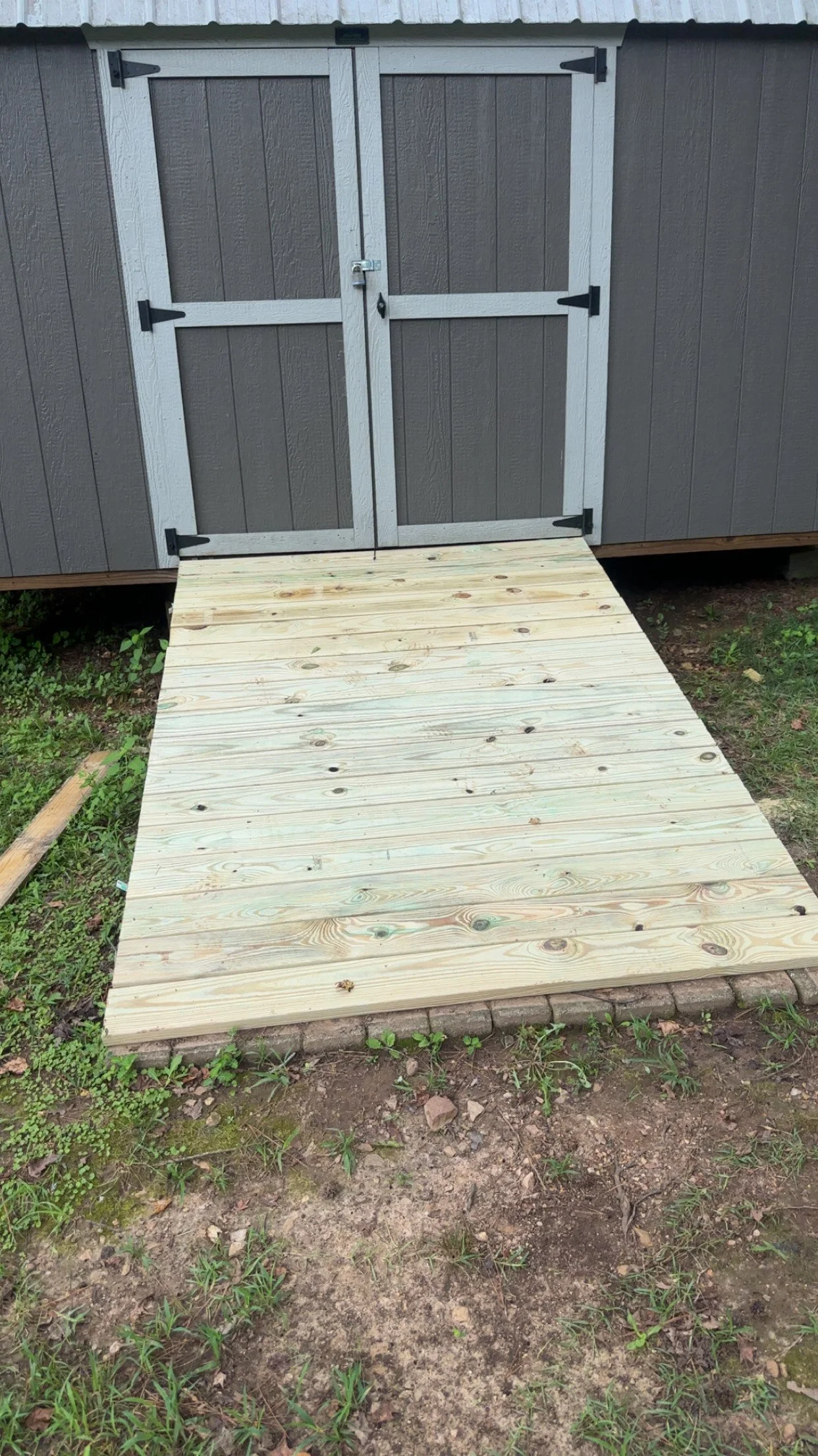 I use pressure-treated wood for long-lasting durability and OSB flooring for strength and stability. The metal shed is securely screwed down to the platform, and I can also add extra metal straps, ratchet strap tie-downs, or ground anchors for even more stability if you choose.Customization Options
